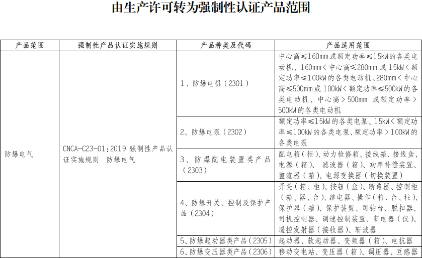按市場監(jiān)管總局2019年34號文要求,自2019年10月1日起,防爆電氣產(chǎn)品納入CCC認證管理范圍。2020年10月1日前,國內(nèi)企業(yè)生產(chǎn)的以上產(chǎn)品應(yīng)憑有效生產(chǎn)許可證或CCC認證出廠、銷售或在其他經(jīng)營活動中使用。對于已獲生產(chǎn)許可證的企業(yè),若以上產(chǎn)品在2020年10月1日(含)后不再繼續(xù)生產(chǎn)的,無需辦理CCC認證;否則,應(yīng)盡快提交認證委托,并在2020年10月1日前獲得CCC認證。