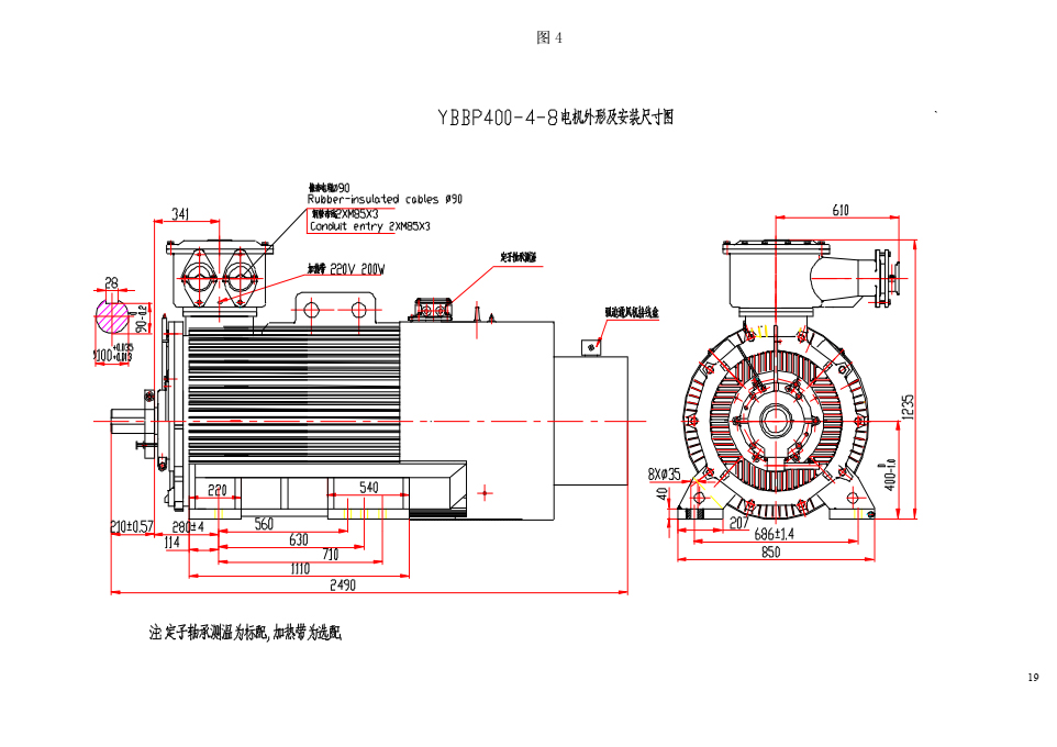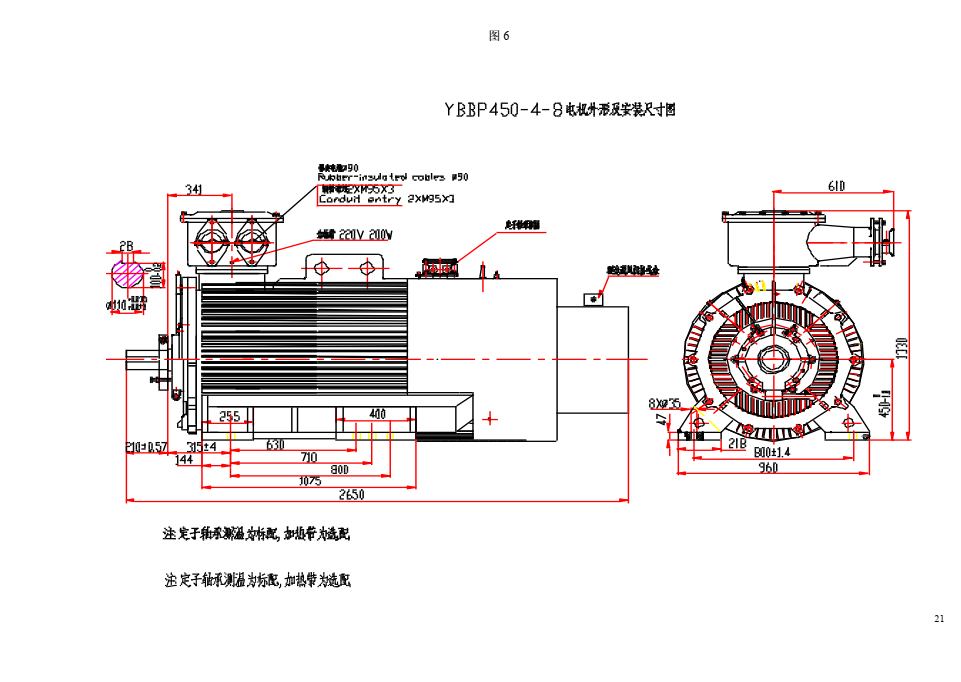 2、強迫通風用小電機(冷卻方式為IC416時)所用電源條件為額定電壓380/660V或660/1140V,額定頻率50Hz的獨立三相交流電源。